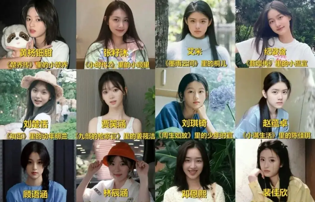 相比散落在各个赛道的05生,05花的童星占比更高,且多由古偶贡献。如“05四美”常驻选手黄杨钿甜和艾米。更早在古偶里刷脸的张籽沐(《神雕侠侣》小小龙女)与纪姿含(《甄嬛传》温宜公主),今年双双出现在艺考现场。此外还有电影童星邓恩熙、正剧童星赵蕴卓(《大江大河2》小梁思申)。